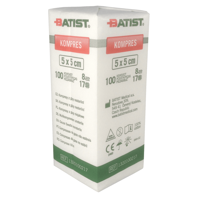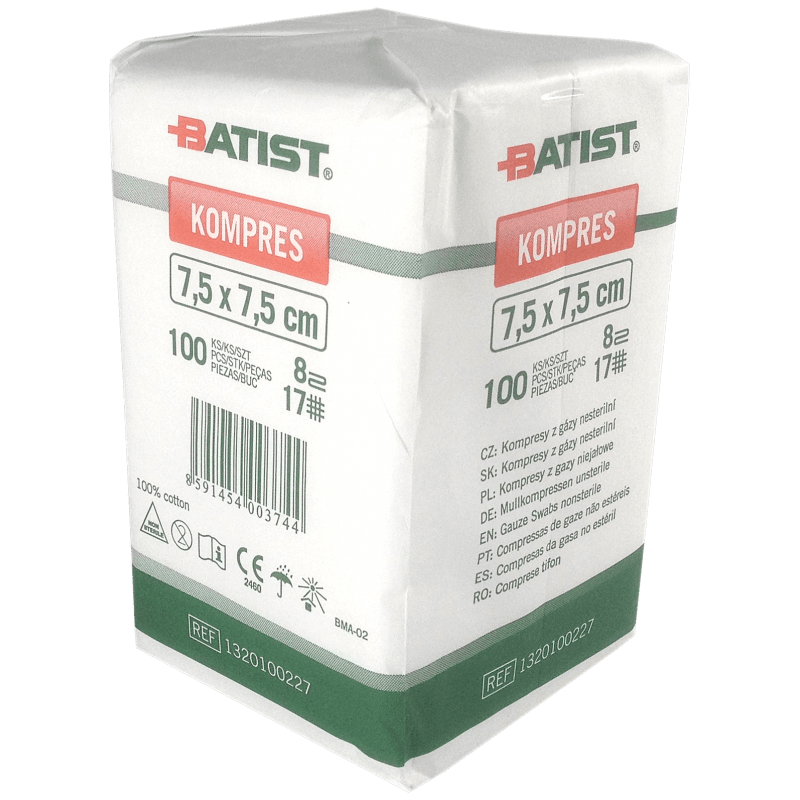 | Compressas | 10 Cm x 10 Cm, 5 Cm x 5 Cm, 7,5 Cm x 7,5 Cm |