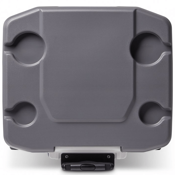 A tampa está equipada com quatro porta-copos. Existem duas alças integradas na lateral para facilitar o carregamento e o descarregamento da caixa térmica. O excesso de água (derretimento) pode ser facilmente descarregado através do bujão de drenagem na parte traseira.